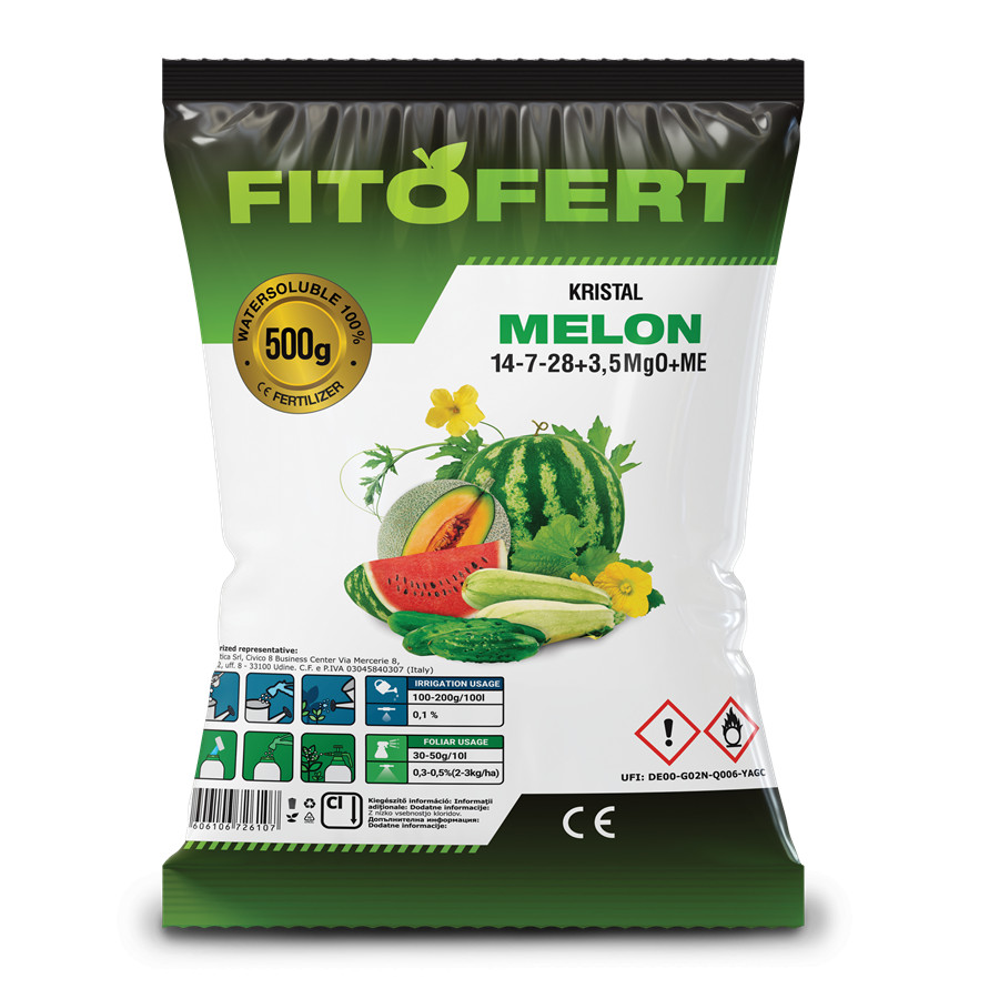 • Görögdinnye, sárgadinnye, uborka és sütőtök tápanyagellátására ajánlott speciális NPK műtrágya, hozzáadott magnézium-és mikroelem tartalommal.