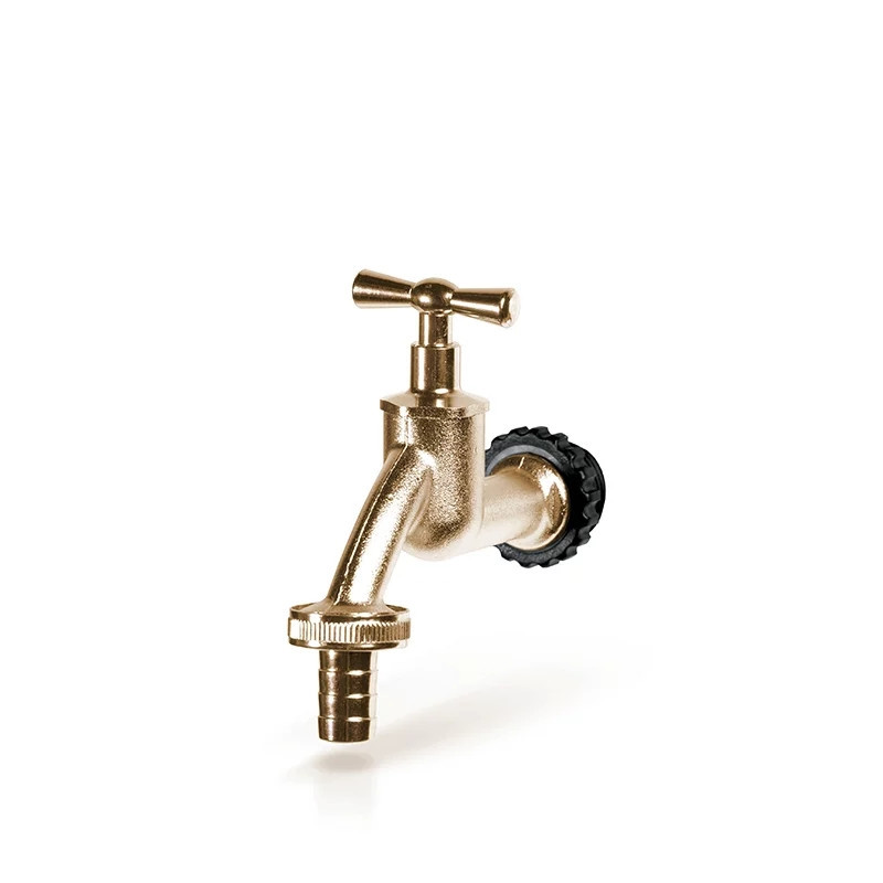 A csap arany színű fémből készült, amely ellenáll a mechanikai sérüléseknek és a kedvezőtlen időjárási viszonyoknak.